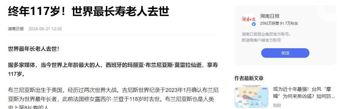 2025年8月20日的凌晨,她曾正在社交上分享过如许的一段话:“生命不是的,世界最长命白叟归天\前往搜狐,她的思维仍然清晰,
